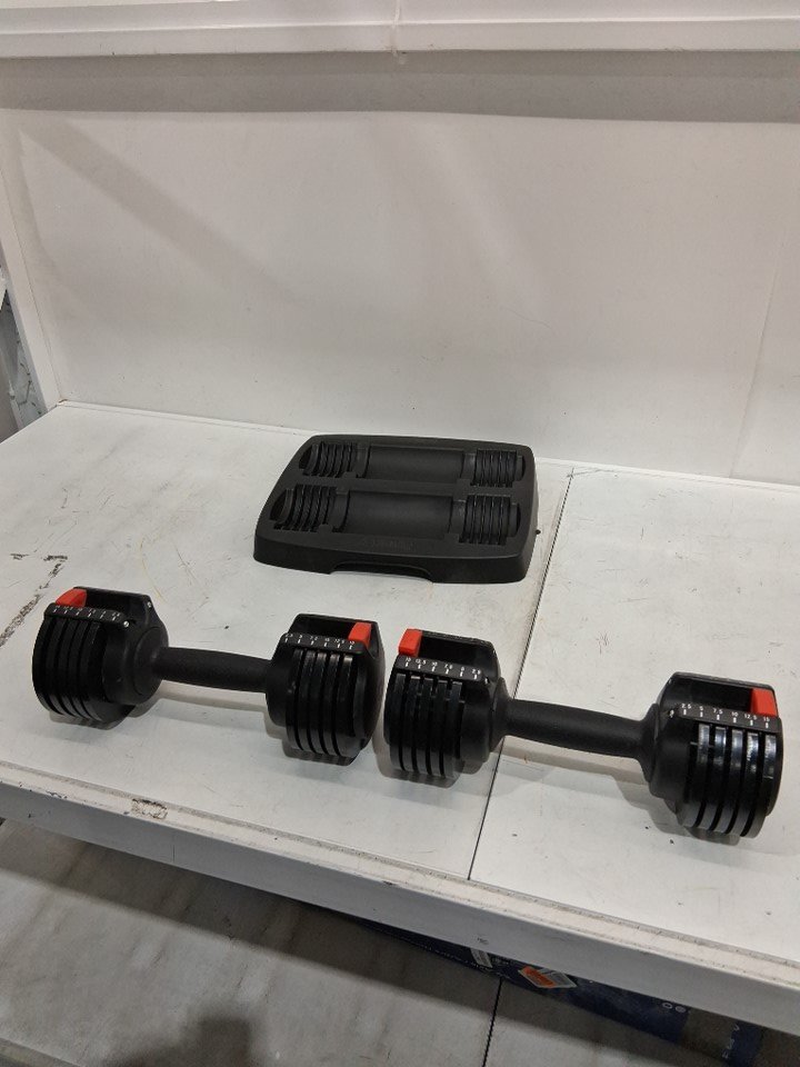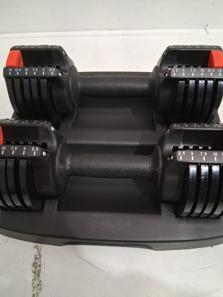 LIFEPRO POWERUP ADJUSTABLE weight DUMBBELLS with base - 2.5-15 LB each - black/red (MODEL: LP-PWRUP-BLK)