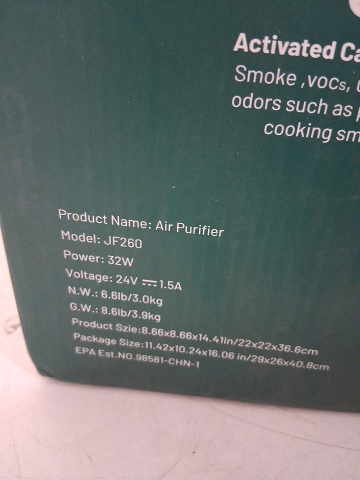 JAFANDA H13 TRUE HEPA and ACTIVATED CARBON AIR PURIFIER WITH LIGHTS AND QUIET MODE - WHITE - (MODEL: JF260)
