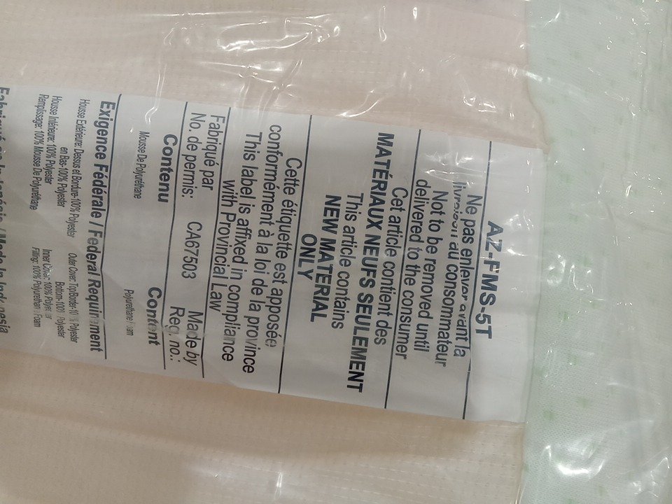 ZINUS MEMORY FOAM 5" TWIN YOUTH MATTRESS - WHITE (MODEL: AZ-FMS-5T)