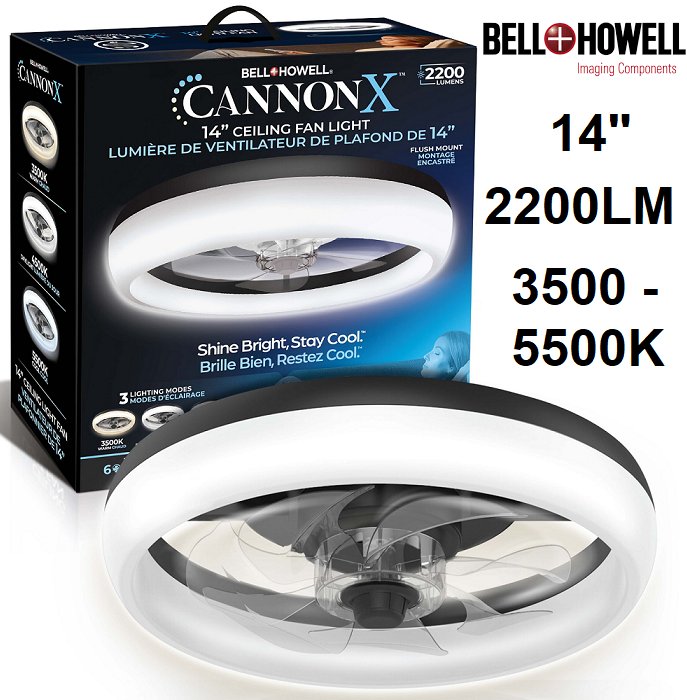 Bell and Howard Canon x Ceiling Fan 2200lm, 3500-5500k - 14" - black/clear - (model: 499-4160-8)