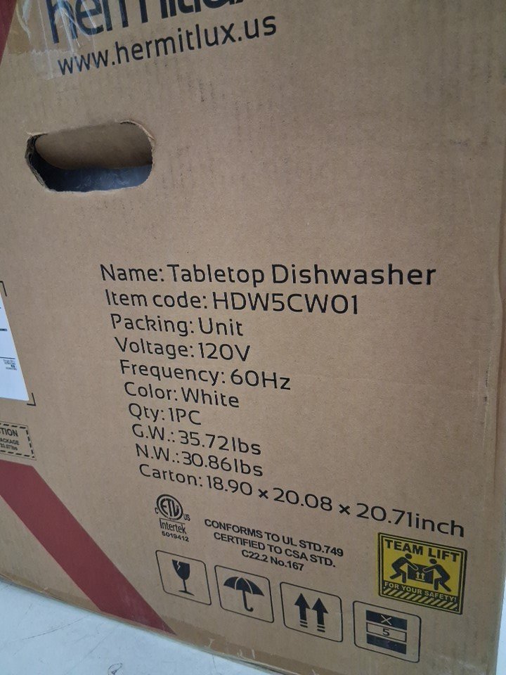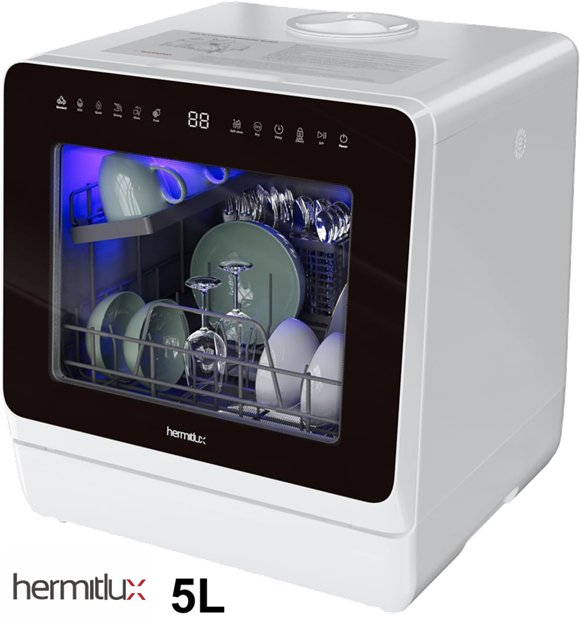 Hermitlux Countertop Dishwasher with 7 Washing Programs, led light, build in water tank - 5l - white/black (model: hdw5cw01)