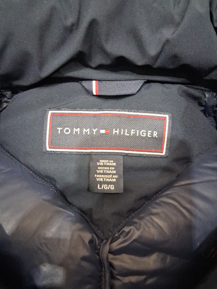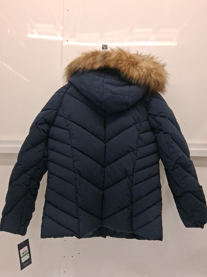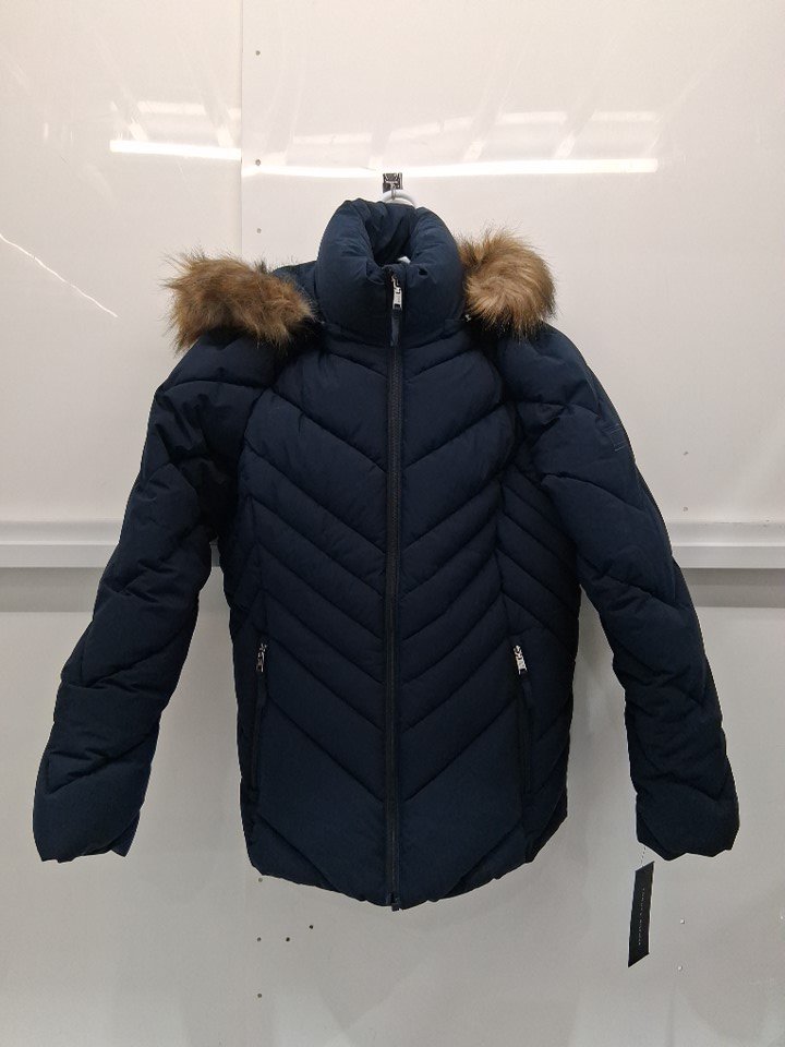 Women's Tommy Hilfiger Faux Fur Trimmed Short Puffer - Large - Navy Blue - (Model: TW4MP566)