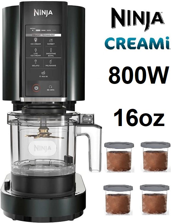 Ninja Creami Ice Cream Maker - 16OZ Capacity, 800w - Black (Model: CN302CCO)
