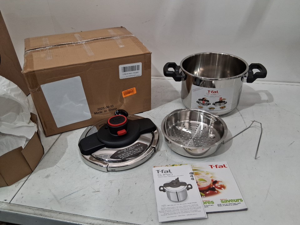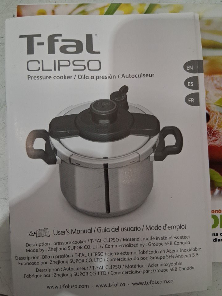 T-FAL CLIPSO STOVETOP PRESSURE COOKER WITH LOCKING LID - 6.3QT/6L - silver (model: p45007)