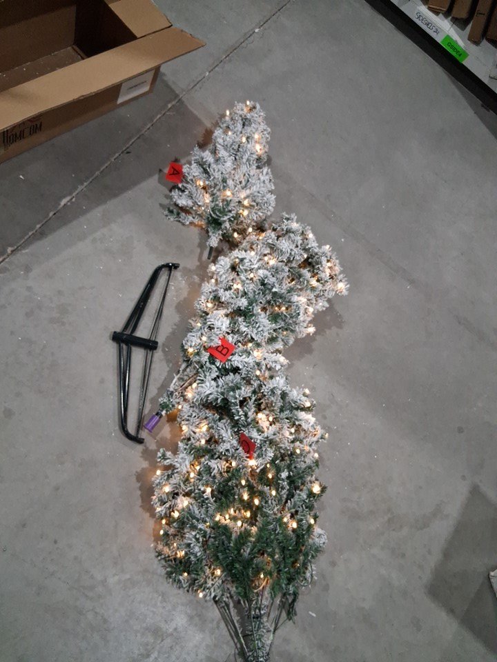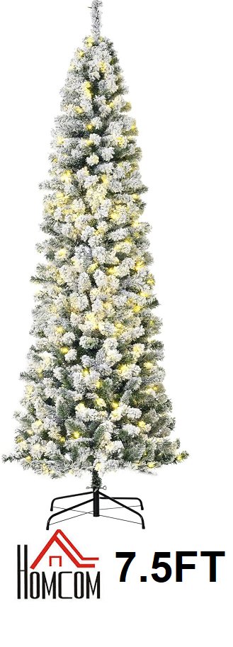 HOMCOM Prelit Artificial Snow Flocked Pencil Christmas Tree, Slim Xmas Tree with Warm White LED Light - 7.5ft - green / white - (model:830-374v80)