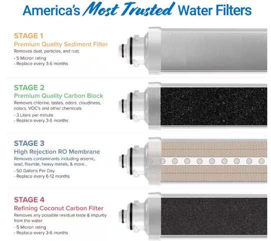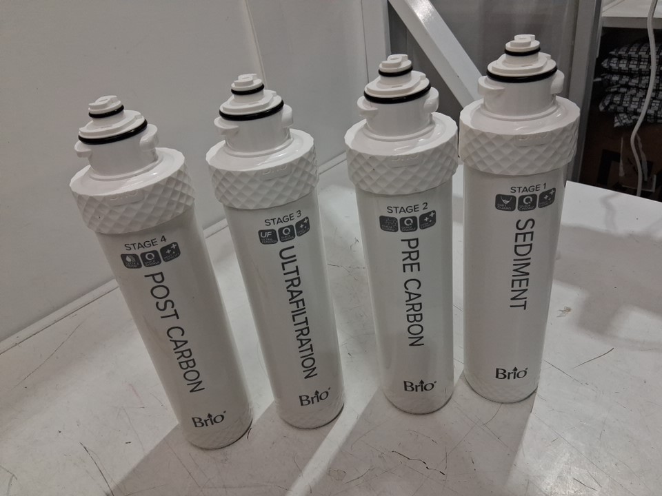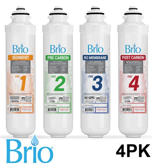 4PK brio 4- stage water cooler replacement kit- sediment, pre-carbon, rd-membrane and post carbon