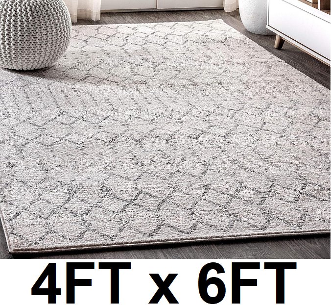 JONATHAN Y Boho Vintage Diamond non-shedding area rug - 4ft X 6ft - CREAM/GREY