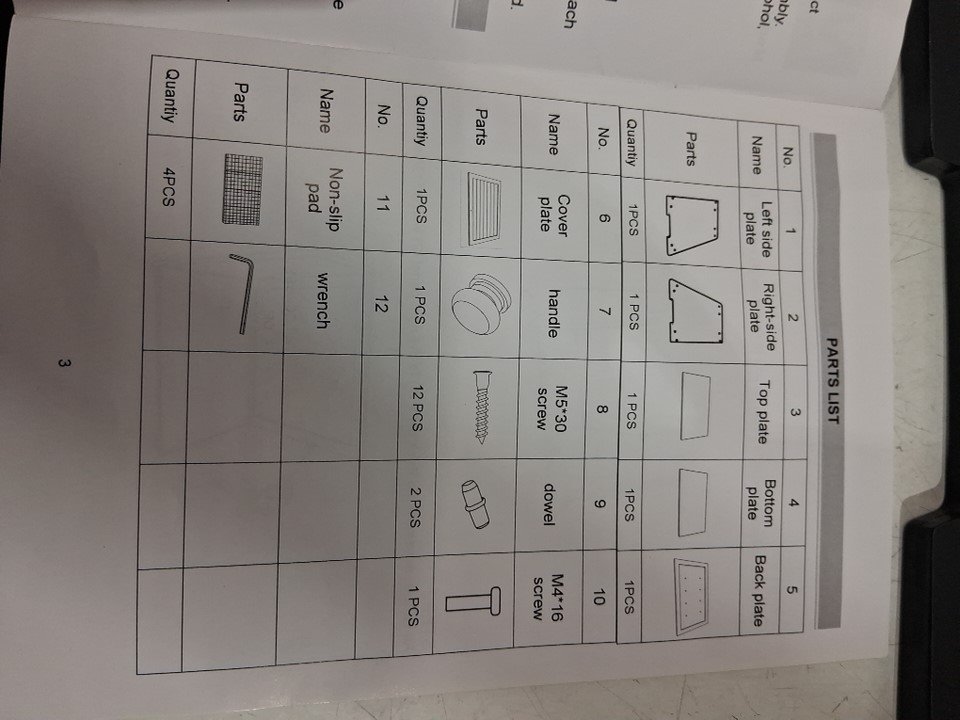 9 screws are missing for cabinet and one of the pieces for cabinet is a bit damaged but can be fixed, see photos.