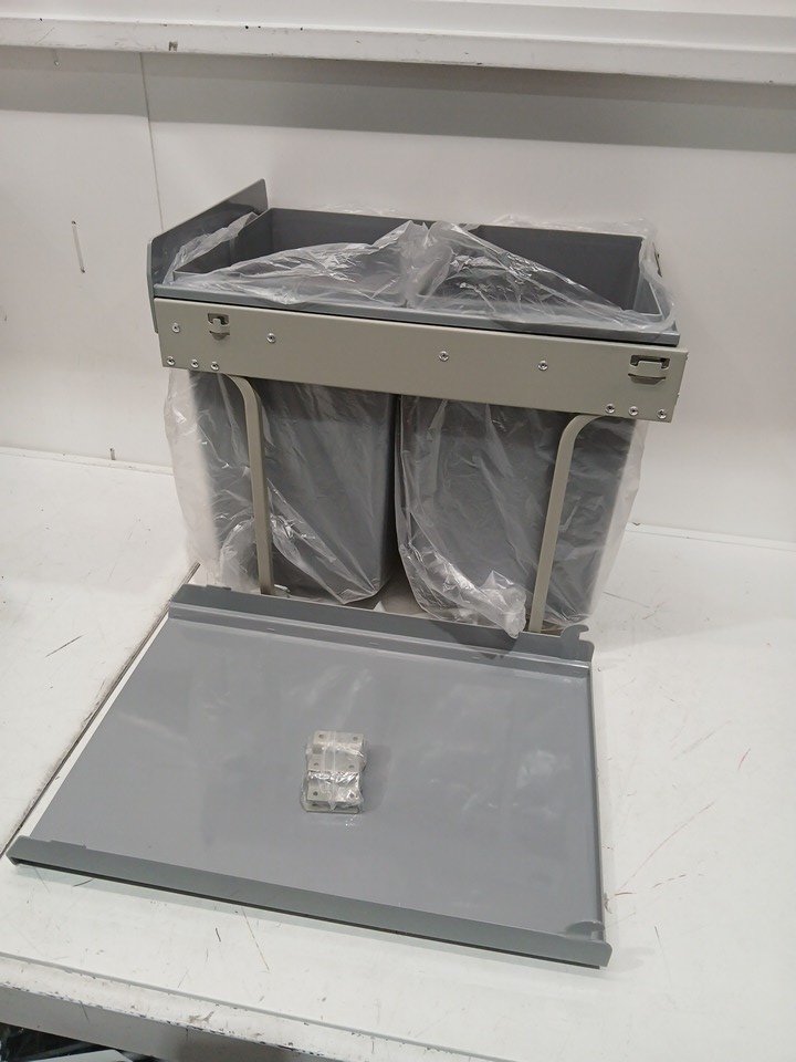 GOOFCXO Dual Pull Out/Slide Out Garbage Bin/can with Lid and Soft-Close Rail - 20L+20L-GREY - (MODEL:CAW3-12-0203)
