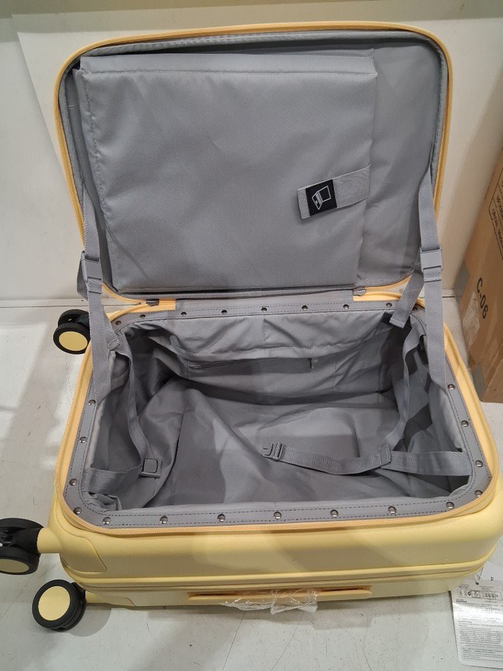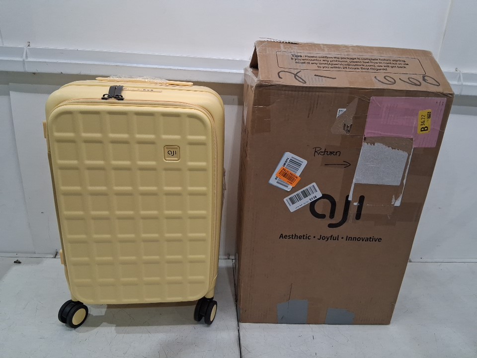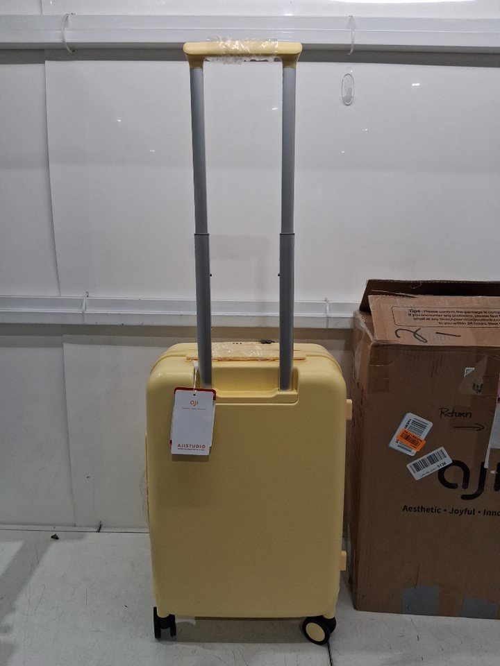 aji expanding hard-shell luggage suitcase with wheels and telescopic handle - 20" - cheese yellow (model: ka7091)