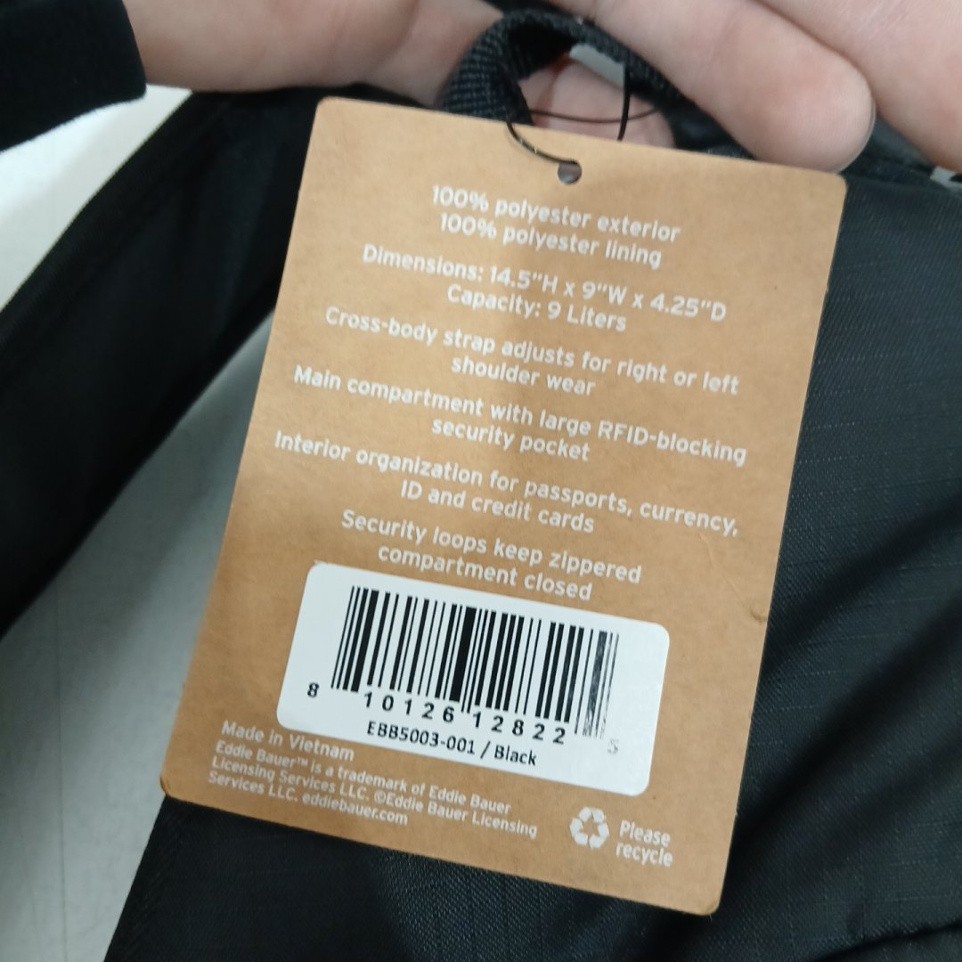 EDDIE BAUER RFID BLOCKING TRAVEL SLING BAG, CROSS BODY BAG - BLACK (MODEL: EBB5003-001)