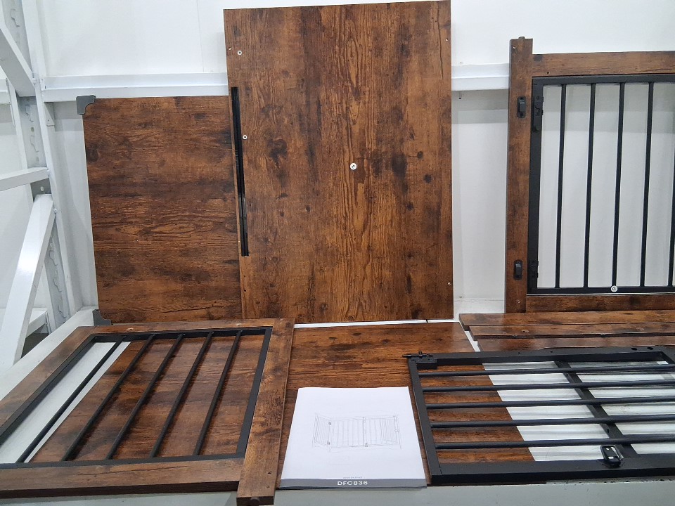 LYNCOHOME Dog Crate Furniture Wooden Dog Kennel TV Stand for Medium Dogs - 32" x 26" x 21.7" - wood/black (model: lhdc65-m-sp)