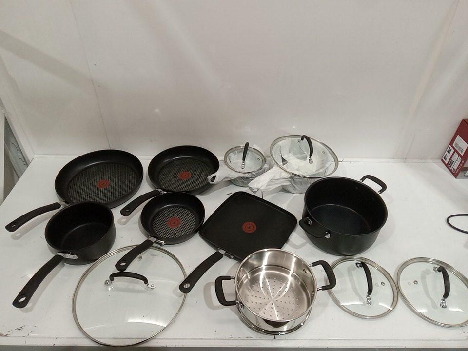 14PC T-fal Ultimate Hard Anodized Durable Nonstick Dishwasher Safe Cookware Set - Black (MODEL: 2100097218)