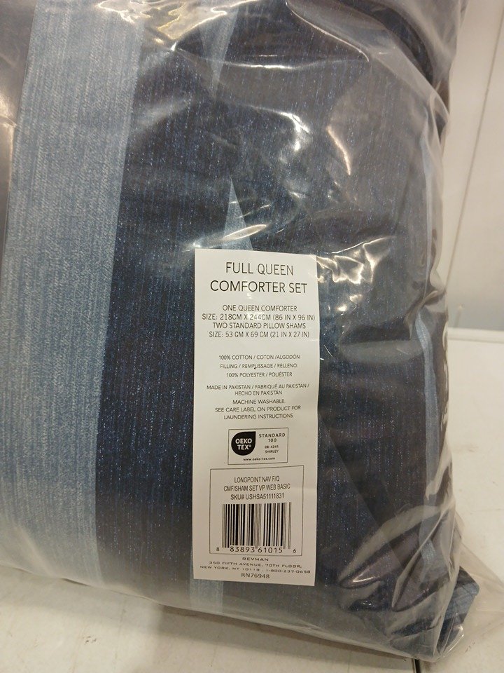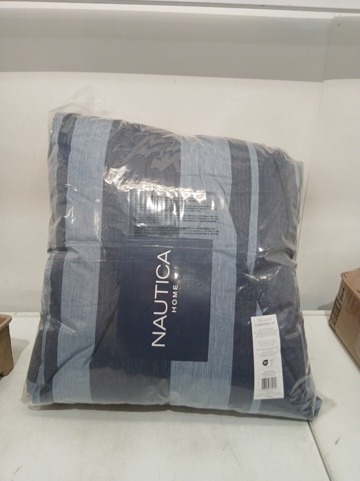 3PC NAUTICA LONGPOINT 100% COTTON COMFORTER SET - FULL/QUEEN - STRIPES IN NAVY BLUE- (MODEL:USHSA51111831)