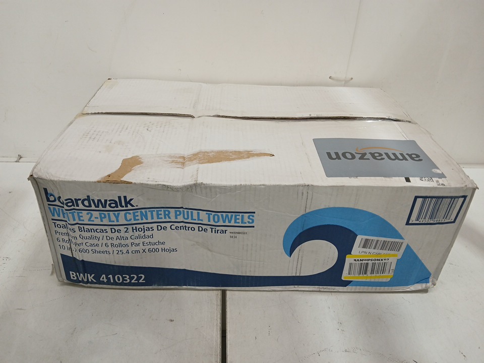 6pk boardwalk 2-ply center pull paper towel roll - 600 sheets per roll - white (model: bwk410322)