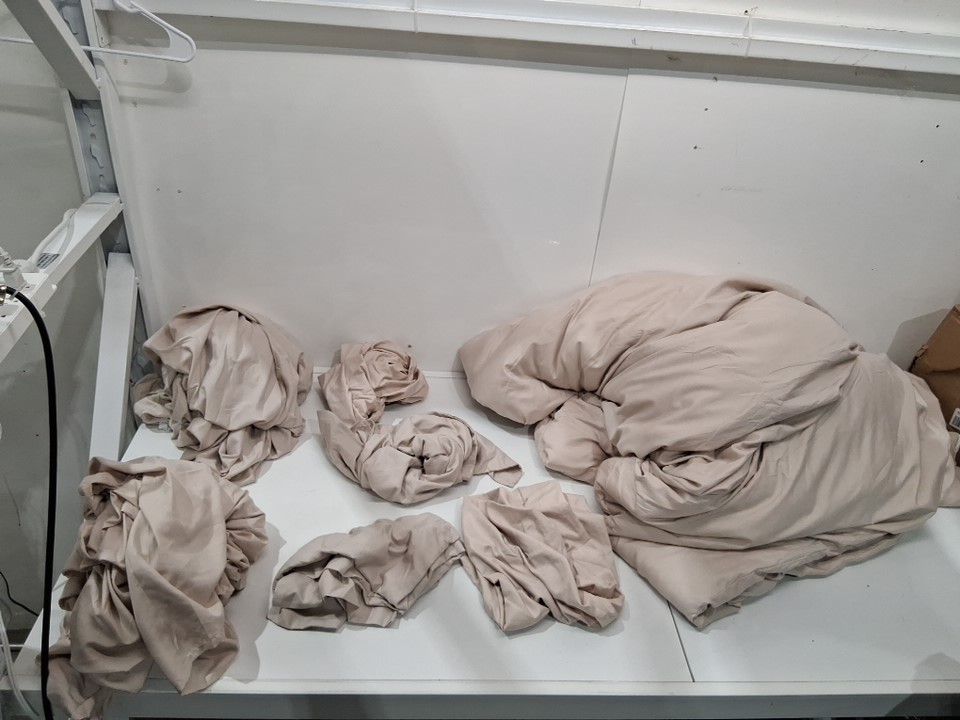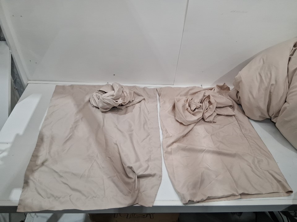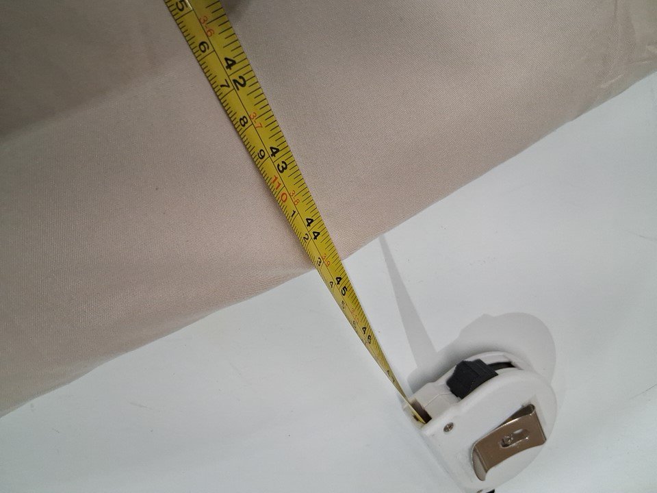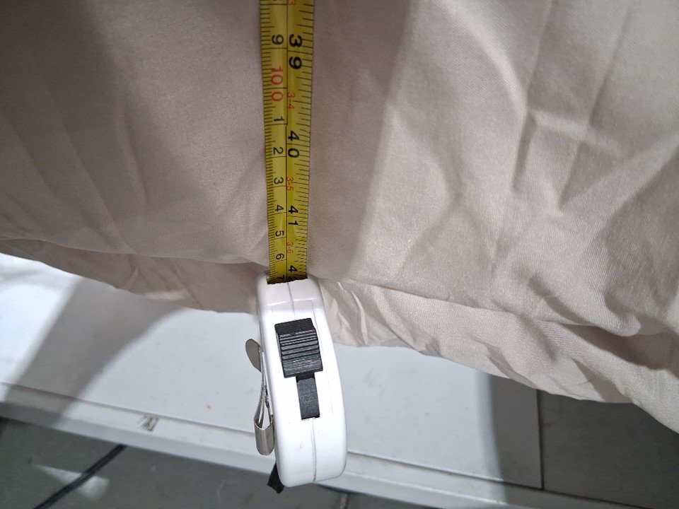 Ours does not have box stitching like the main image Comforter measured in half on desk