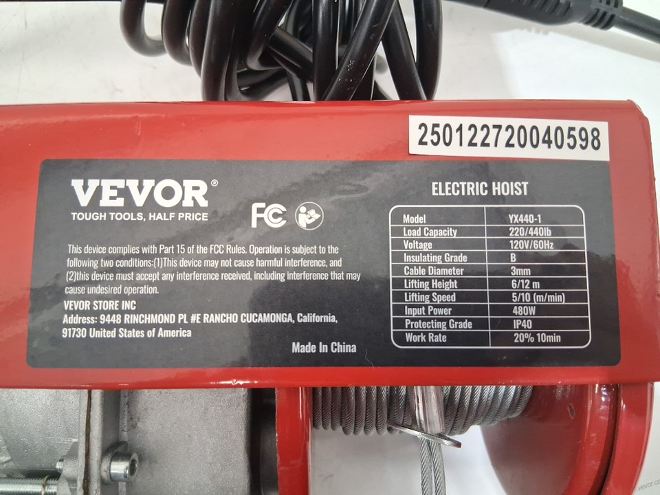 vevor electric overhead hoist lift with wired remote control - 440lbs max - 14ft wire winch/40ft single cable (model: yx440-1)