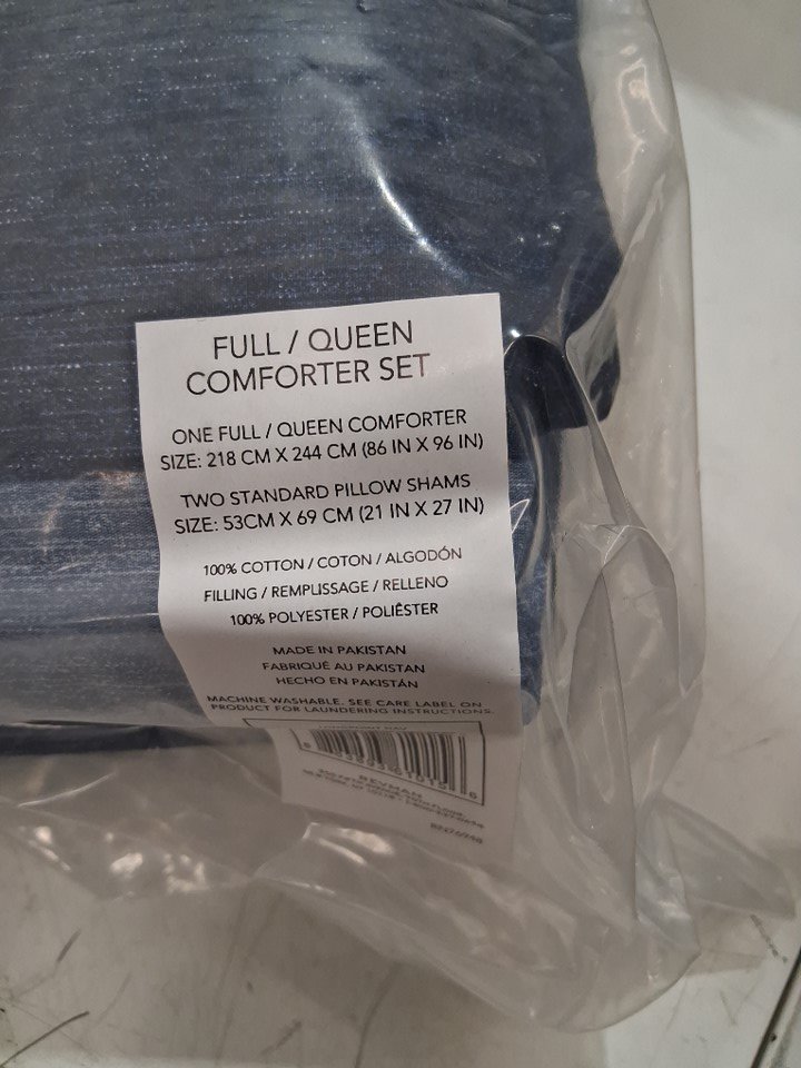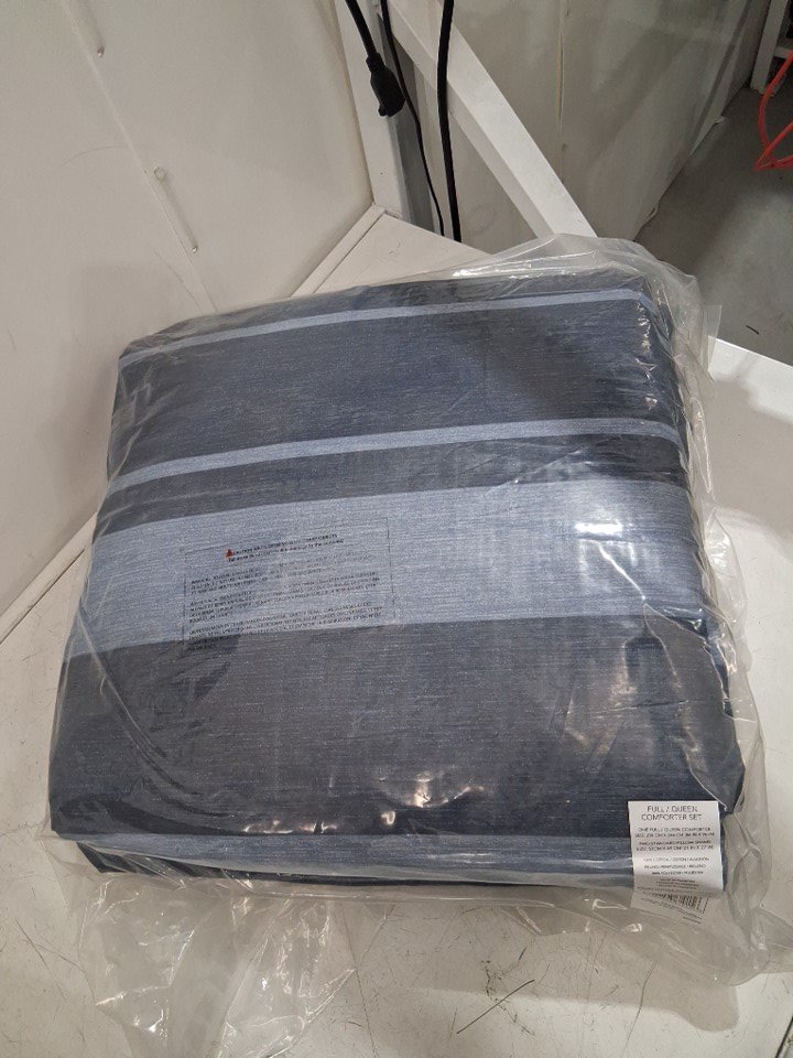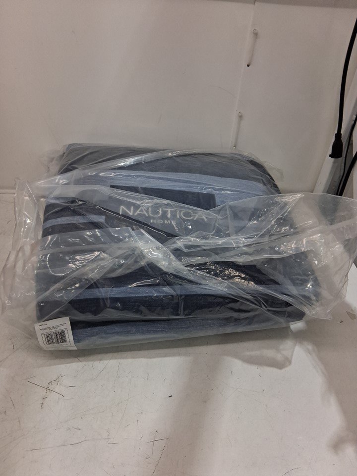 3PC NAUTICA LONGPOINT 100% COTTON COMFORTER SET - FULL/QUEEN - STRIPES IN NAVY BLUE- (MODEL:USHSA51111831)