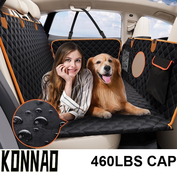 KONNAD Back Seat Extender Hard Bottom Dog Car Seat Cover - 460LBS CAP - BLACK/ORANGE