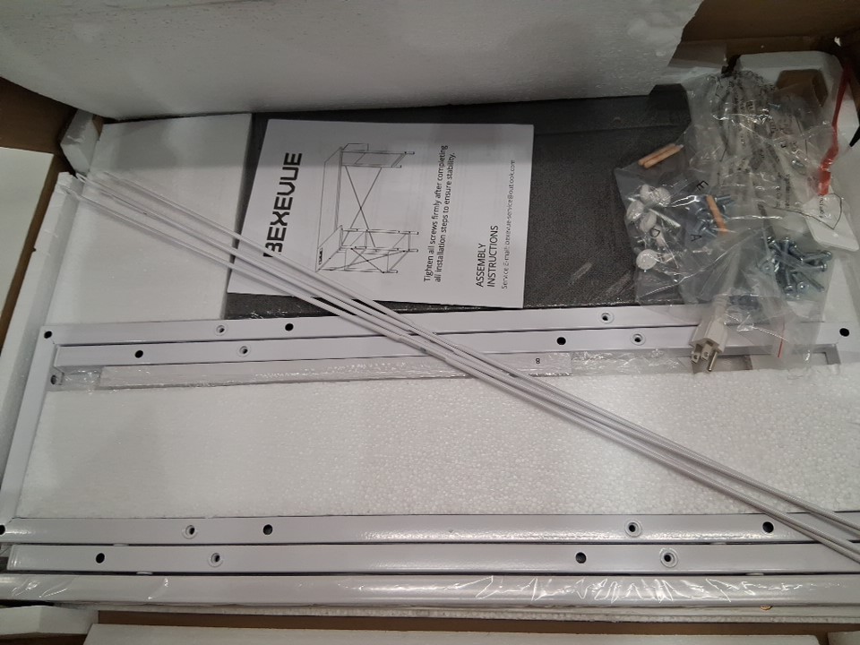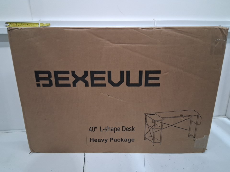 bexevue l-shaped computer desk with reversible shelves and power outlet - 40" - White - (model: 040w)