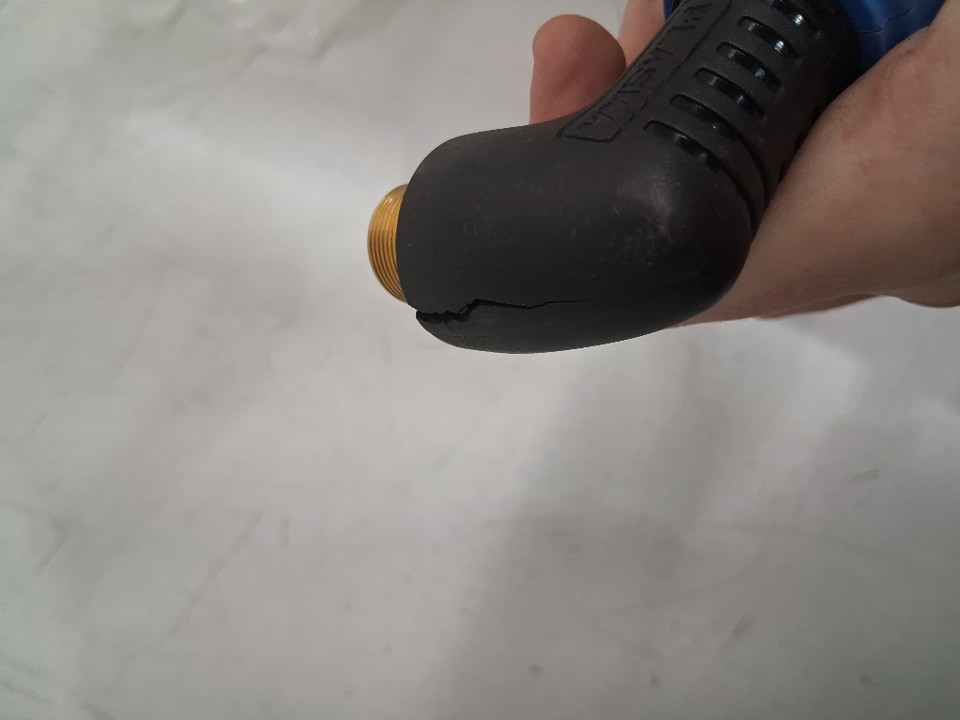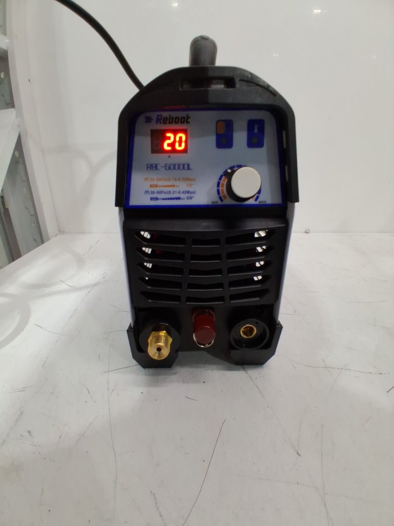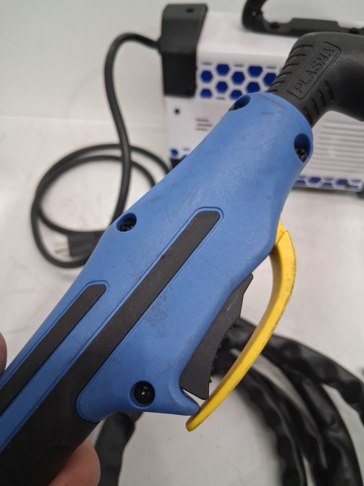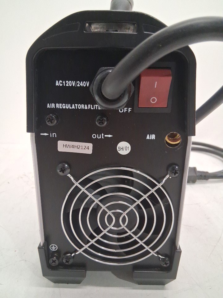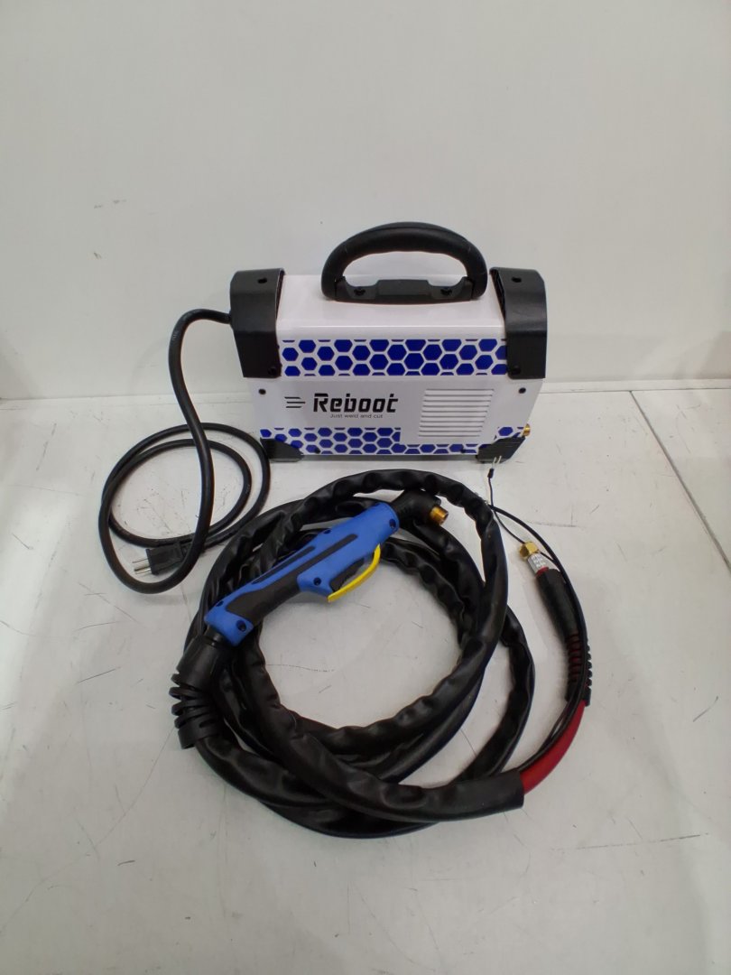 Only comes with the plasma cutter and the plasma cutting torch, missing the ground clamp, the attachment pieces and the air filter regulator. Also has scuff marks and a crack on the plasma torch. Tested for power.