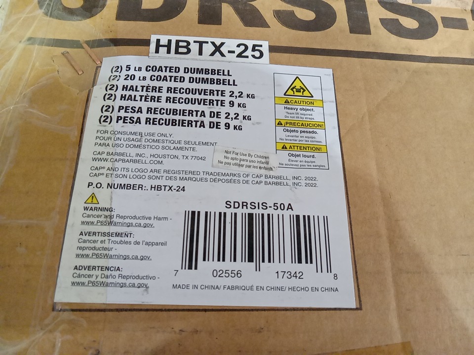 4pc CAP Rubber Coated Hex Dumbbell Set Includes 2 x 5lbs & 2 x 20lbs - BLACK (model: sdrsis-50a)