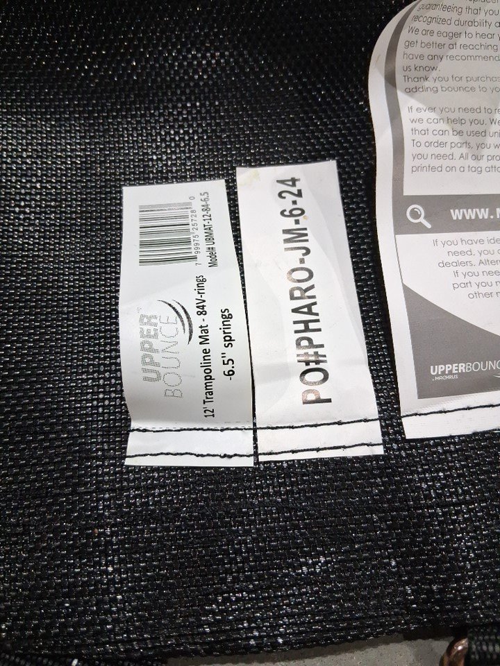 Upper Bounce Round Trampoline Jumping Mat - 6.5" Rings - 12FT - Black (model: UBMAT-12-84-6.5)