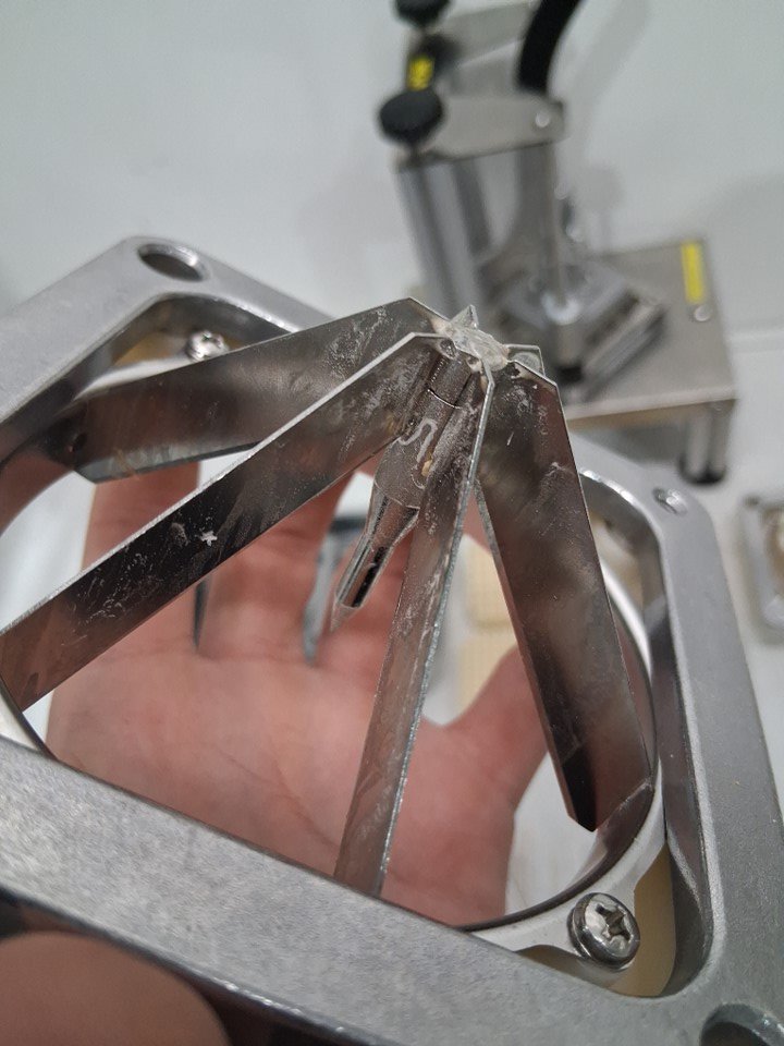 Scuff marks/scratch marks on the item and some accessories from previous use. Also comes with lots of extra blades.