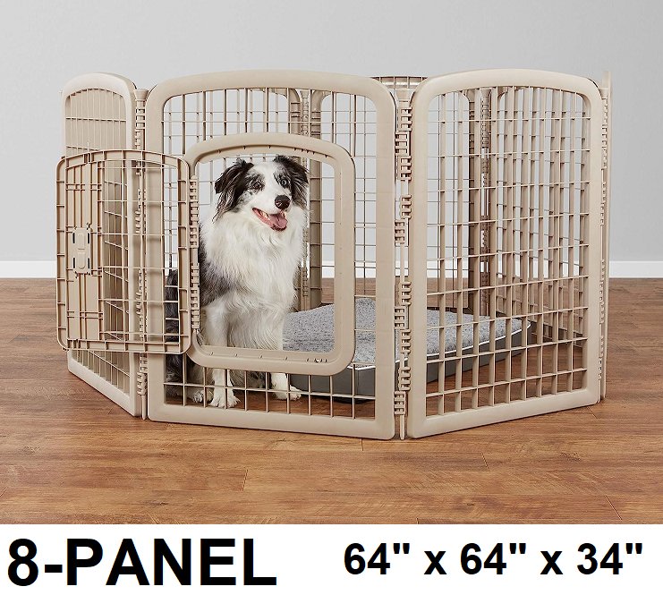 AMAZONBASICS 8-panel Plastic Pet Pen Fence With Gate, 64" x 64" x 34" - BEIGE