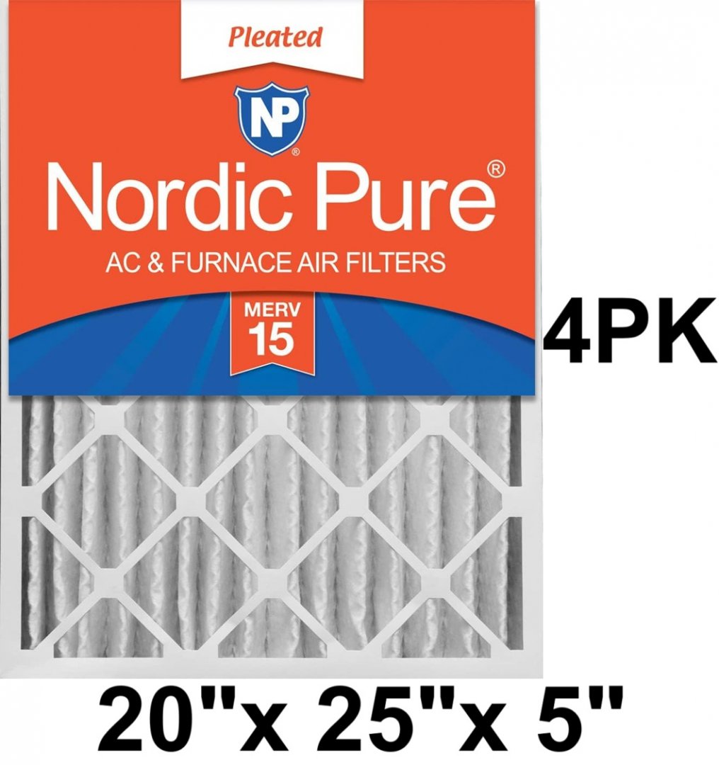 4pk nordic pure pleated merv 15 replacement AC/furnace air filters - 20" x 25" x 5" - (model: 20x25x5abm15-4)