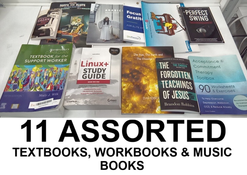 11 assorted TEXTbooks , WORKBOOKS & MUSIC BOOKS - assorted authors, genres & conditions
