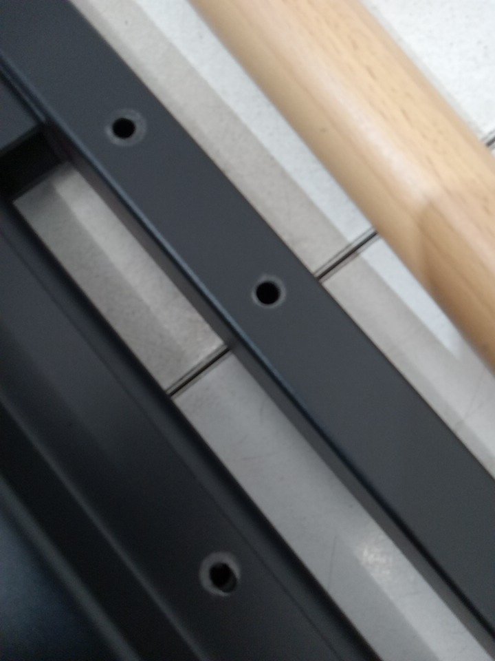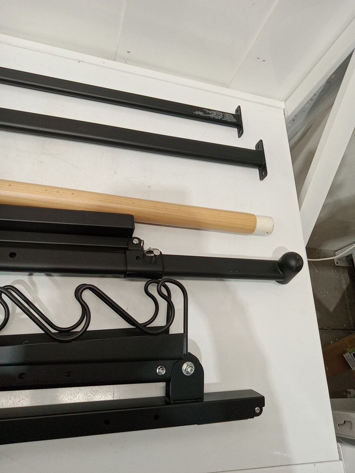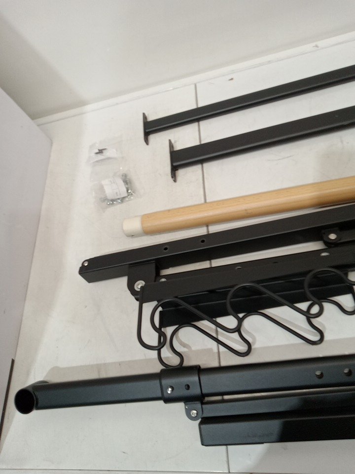 There are scuffs and installation marks and will require additional hardware for full assembly.