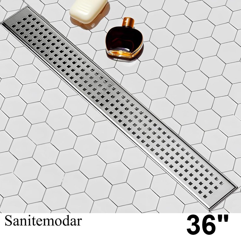 SANITEMODAR LINEAR SHOWER DRAIN WITH TILED STEALTH & 2 AND 1 PANELS - 36" - BRUSHED POLISHED STAINLESS STEEL (MODEL: LSD-HP-36IN)