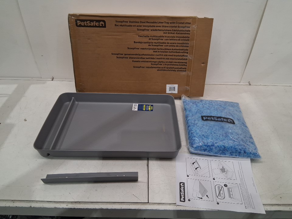 PETSAFE SCOOP-FREE REUSABLE LITTER BOX TRAY WITH CRYSTAL CAT LITTER for use with petsafe litter boxes - 20" X 14" - 4.3Lb - GREY (MODEL: ZAC10-18121)