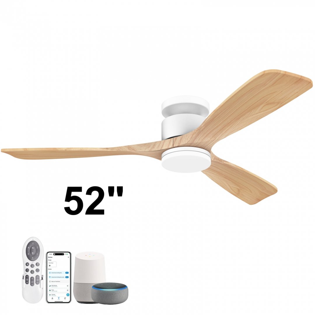 NOPAARD Smart 52" Solid Wood Flush Mount Ceiling Fans with Lights, Quiet DC Reversible Motor, Indoor Ceiling Fan with Alexa App Remote Control, High CFM, Dimmable 3CCT LED Light - light wood/white - (model: yj801-wd)