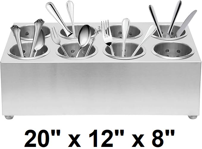 Commercial 8-Hole Stainless Steel Flatware Holder - 20" x 12" x 8" - stainless