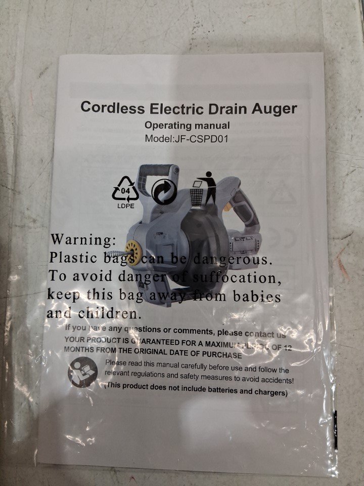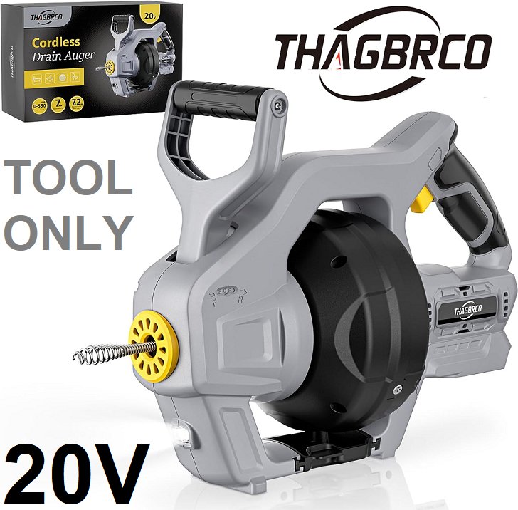 THAGBRCO CORDLESS DRAIN AUGER *TOOL ONLY* - 550RPM - 25FT - for 20v battery - GREY (MODEL: jf-cspd01)