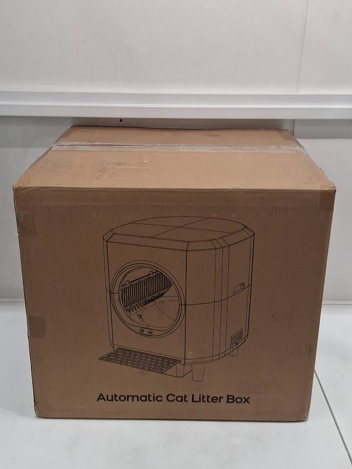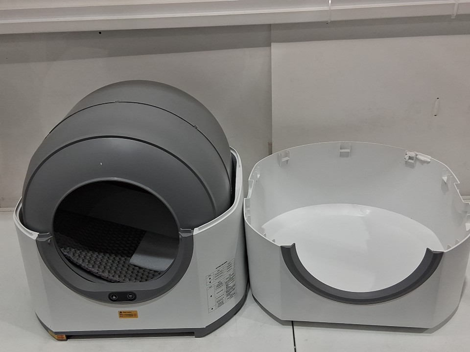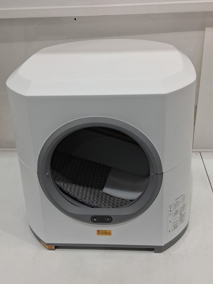 ELLENPENT AUTOMATIC SELF-CLEANING CAT LITTER BOX WITH APP CONTROL AND SAFETY SENSOR - 90L CAPACITY WITH 3 ROLLS OF BAGS - GREY/WHITE (MODEL: ch-icb019)