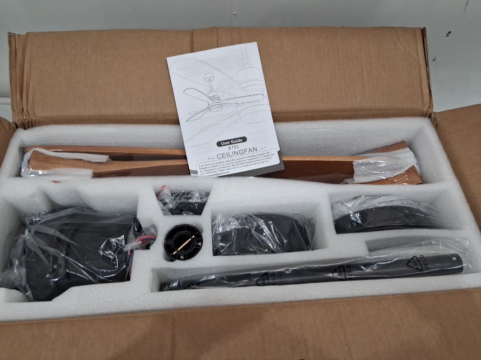 Ceiling 3 Blade Fan with Light and Remote Control - 52"- black/walnut (model: 8701)