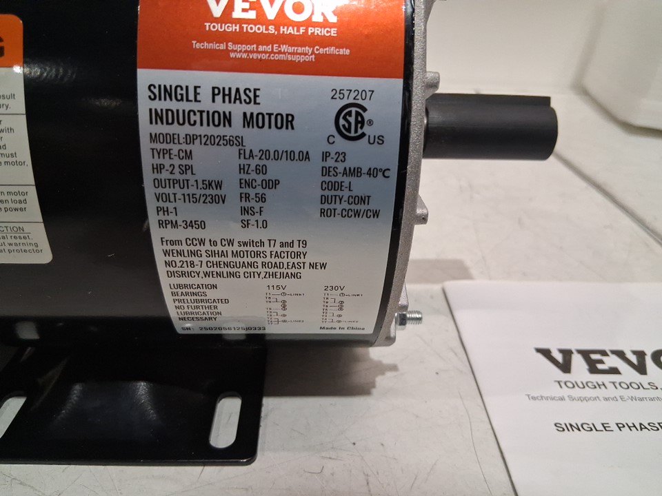 vevor single phase induction motor - 3450RPM / 230V - BLACK (MODEL: dp120256SL)