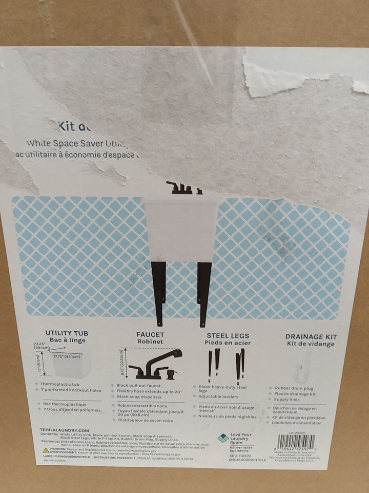 Freestanding Laundry Tub Utility Sink with Black Pull-Out Faucet - 16 GAL - BLACK - (model: 040EC22BKBKBK01)