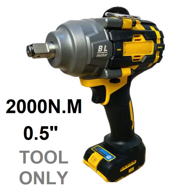 High-torque handheld brushless cordless impact wrench - 2000n.m - Yellow/Black