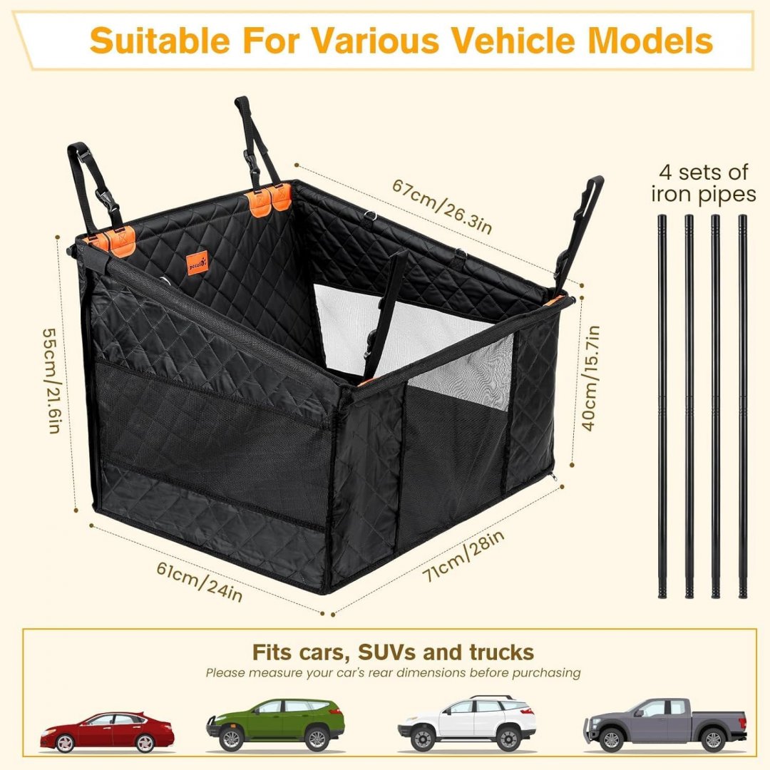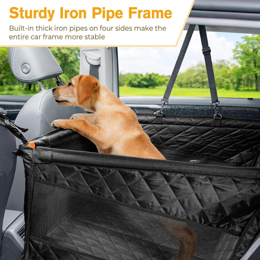 dog car seat cover for back seat with iron pipe frame - 28" x 24" x 21" - black - (model: gzd-blk)
