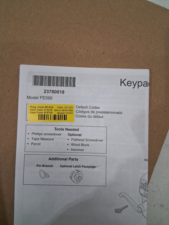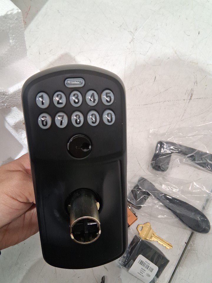 Schlage plymouth Keypad Entry with Flex Electronic Lock and accent levers - Matte Black (model: FE595 PLY 622 lat)