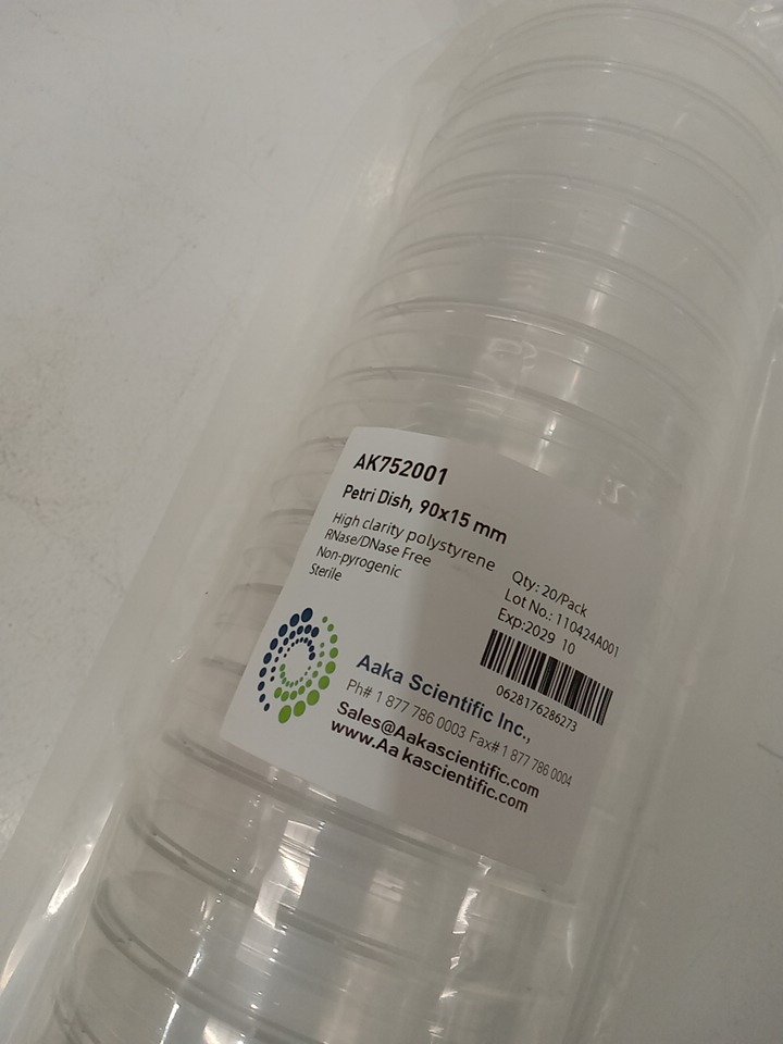 40PK AAKA SCIENTIFIC PETRI DISHES WITH LID, DNase/RNase Free, Non pyrogenic, Sterilized, High Clarity polystyrene - 90 X 15MM - CLEAR (MODEL: AK752001C)