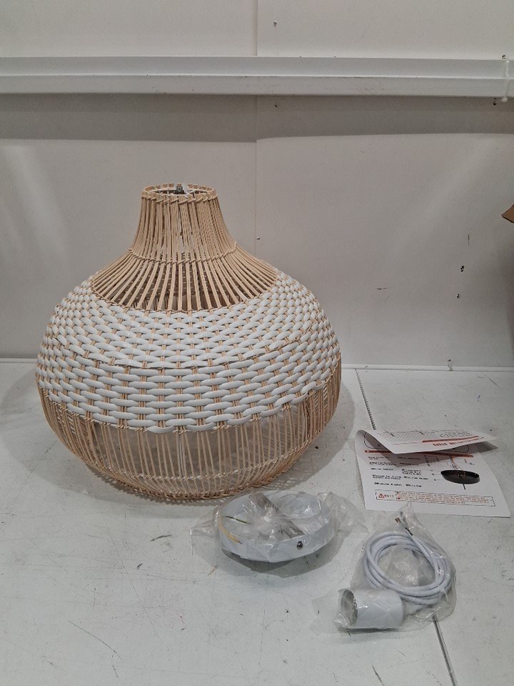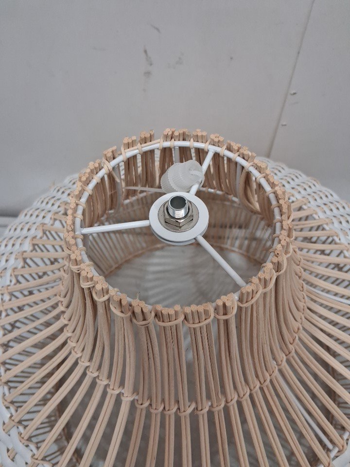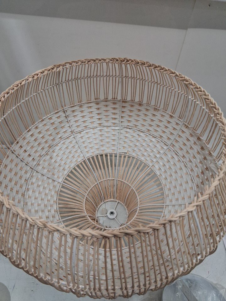vintage rattan hanging ceiling mounted pendant light fixture - 16" round - brown / white