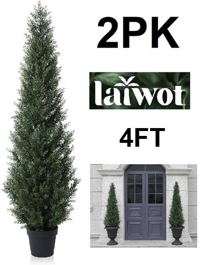 2PK Laiwot ARTIFICIAL POTTED CEDAR TOPIARY TREES FOR FRONT ENTRANCE, LIVING ROOM - 4FT - GREEN