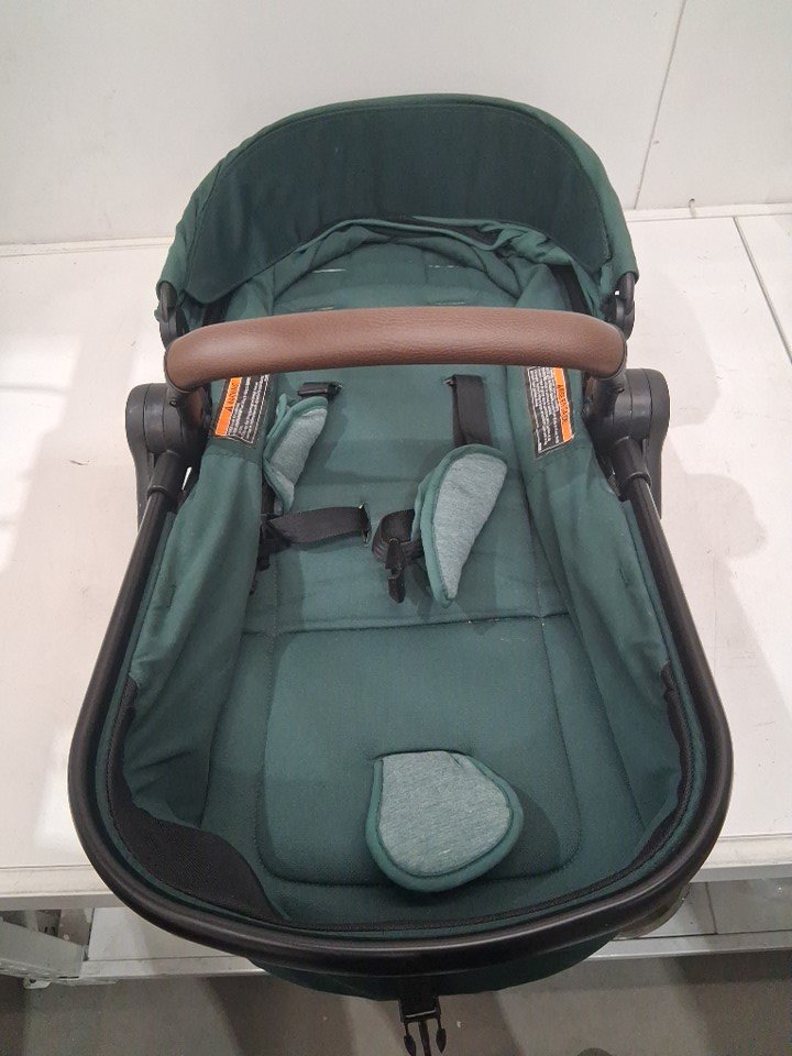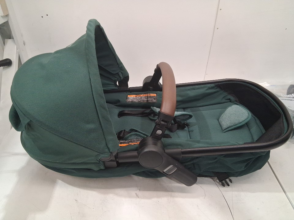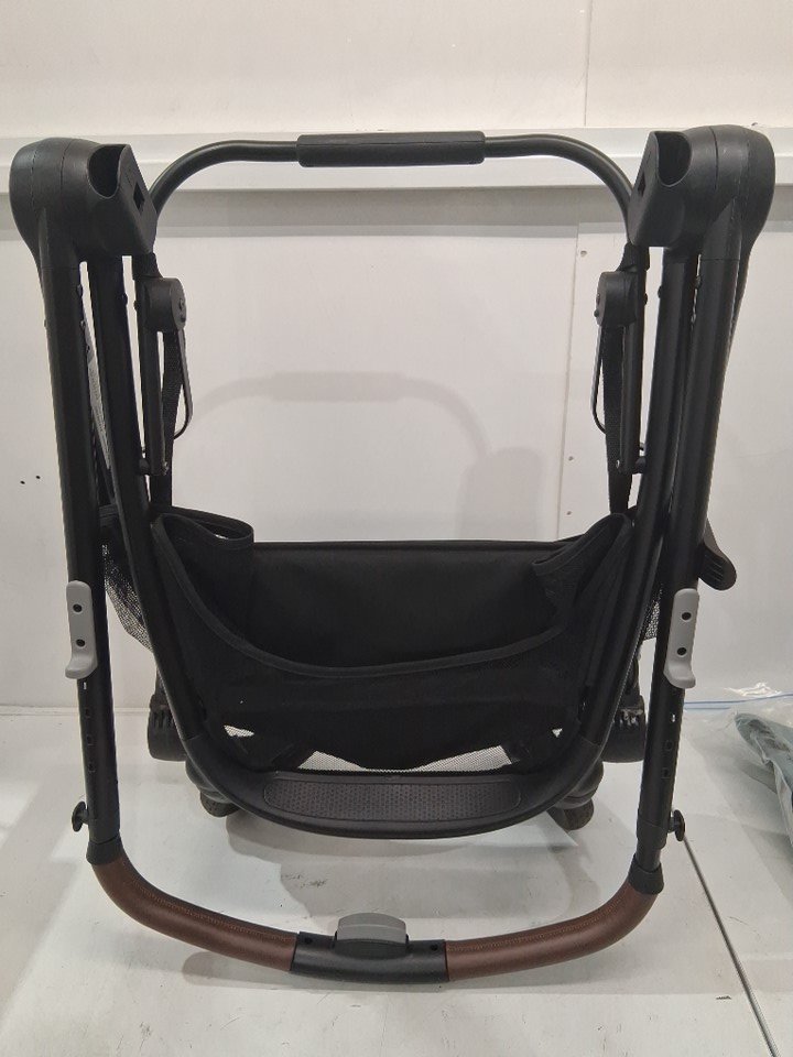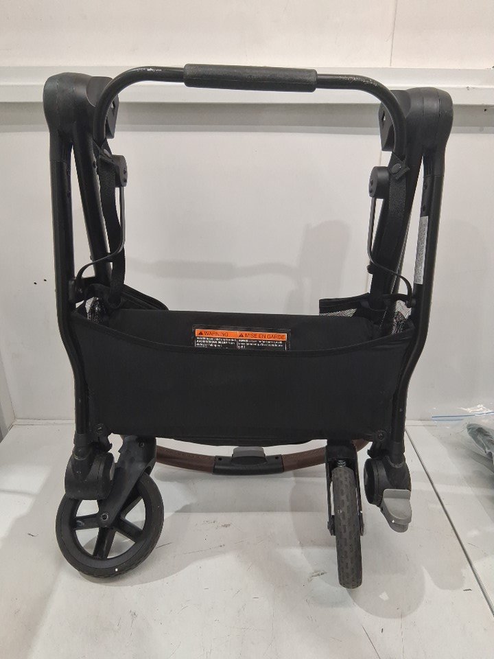 There is some dirt on the wheels, some scuffs on the front of the stroller portion, and a light stain and some dirt left on the carriage all indicating some previous use, but all parts appear clean and in good condition with no visible damage or issues - see photos.