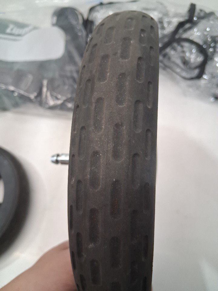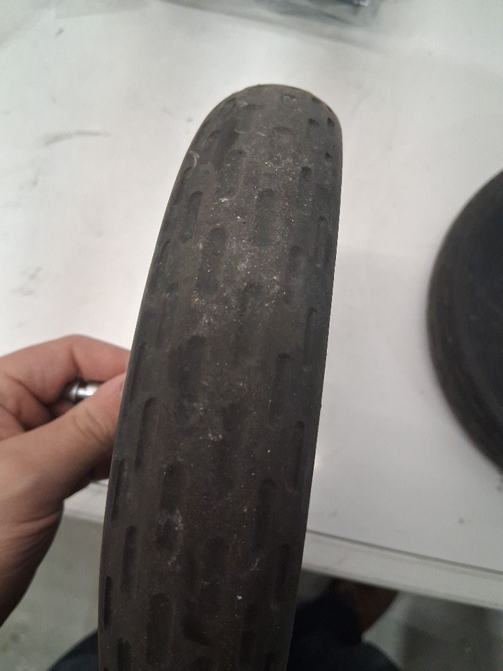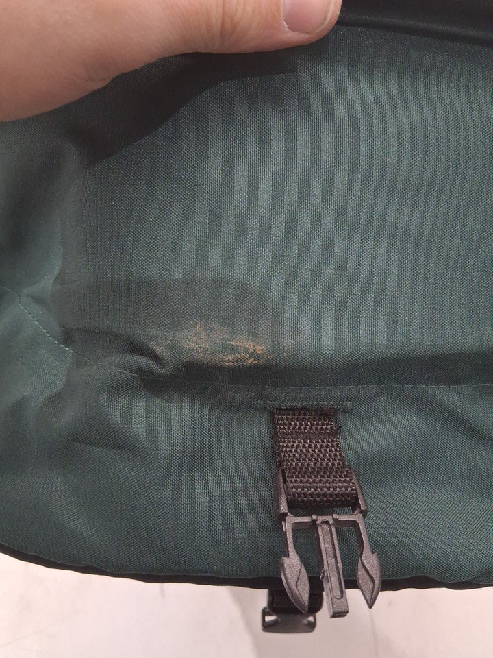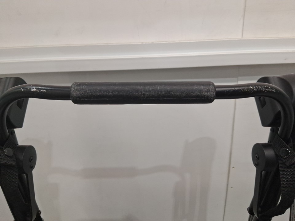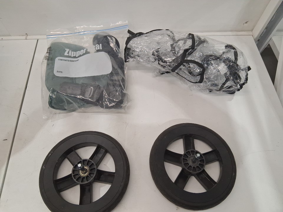 There is some dirt on the wheels, some scuffs on the front of the stroller portion, and a light stain and some dirt left on the carriage all indicating some previous use, but all parts appear clean and in good condition with no visible damage or issues - see photos.