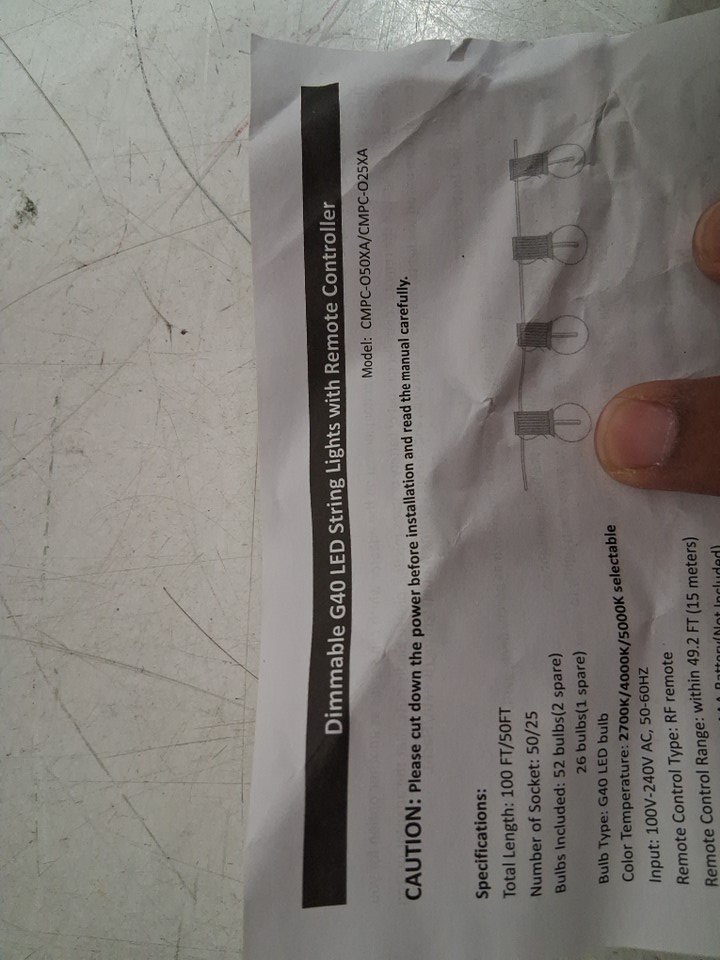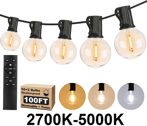 Outdoor g40 dimmable Shatterproof LED String Lights with 3 Color Lights and remote - 100ft - 2700k-5000k (Model: cmpc-o50xa)
